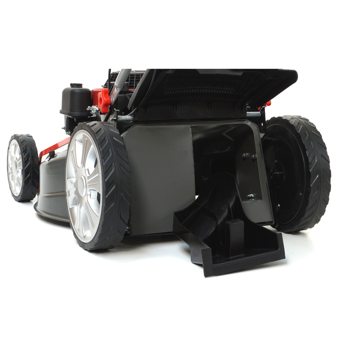 Kosiarka jest nie tylko mocna, ale sprawne jej poruszanie i działanie kół dodatkowo ulepszają podwójne łożyska kulkowe. Zwiększają one wytrzymałość układu napędzania oraz poprawiają pracę kosiarki na trudnych terenach. Tylnie koła mają wysokość 25 cm, a przednie 20 cm. Duże koła zapewniają dobrą sterowność i trakcję oraz bezpieczeństwo dla świeżej trawy przed przypadkowym skoszeniem.