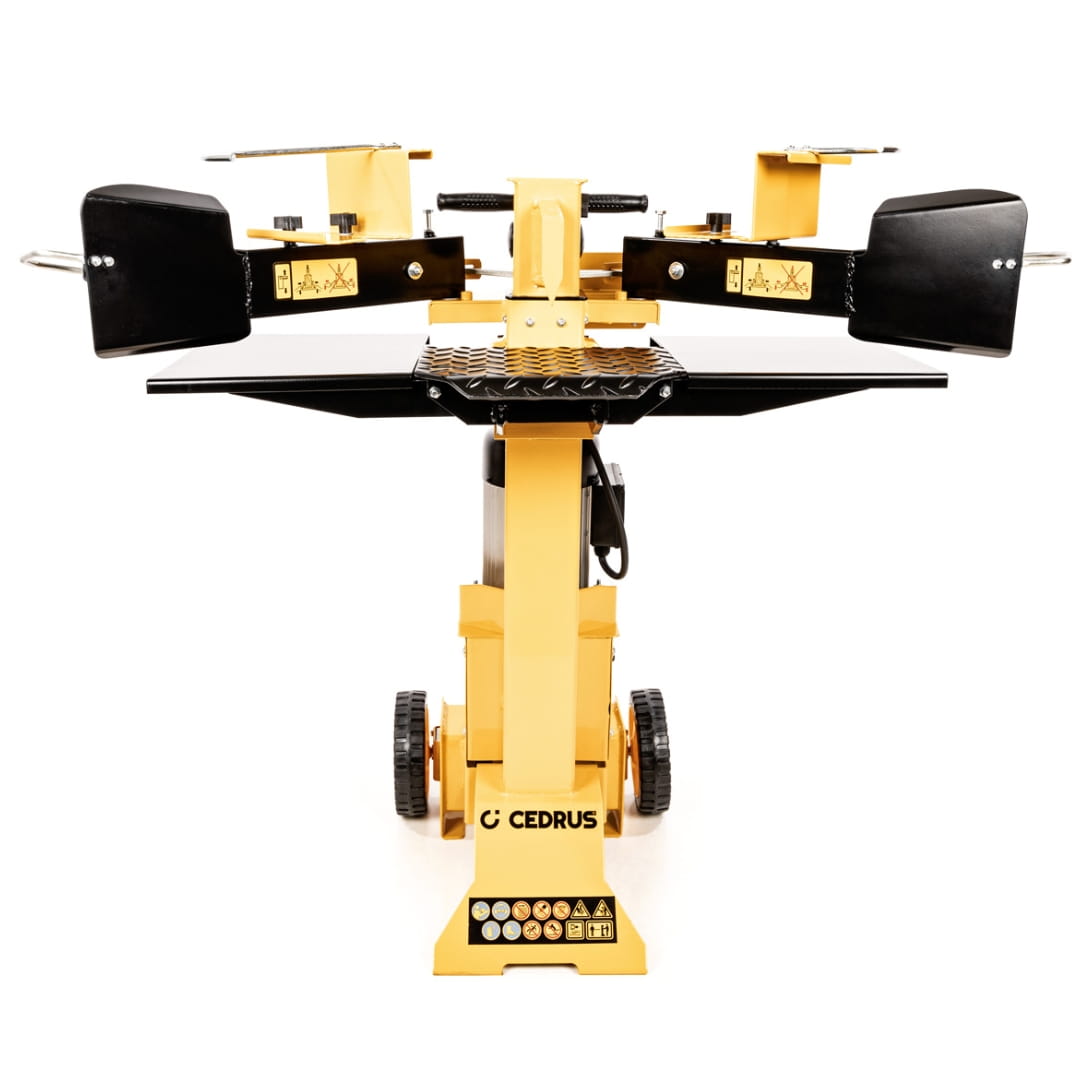 Łuparka pionowa do drewna Cedrus LS06V standardowo wyposażona jest w klin, który rozłupuje drewnianą kłodę na 2 części (można ją wyposażyć również w klin rozłupujący na 4 części). Dzięki sile nacisku aż 7 ton łuparka pionowa LS06V Cedrus jest w stanie poradzić sobie z kłodą o wymiarach dochodzących aż do 55 cm x 30 cm. Sprawia to, że idealnie sprawdzi się zarówno do zastosowań domowych jak i bardziej profesjonalnych.
