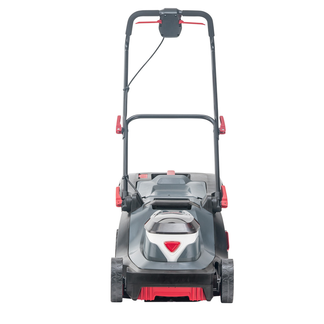 Kosiarka posiada 2 komory akumulatorowe co przedłuża znacznie jej czas i zasięg pracy. Ma ona 3 tryby koszenia, którymi są wyrzut do kosza oraz wyrzut tylny i mulczowanie. Kosz na trawę ma uchwyt do przenoszenia, a jego pojemność to 45 l. Dodatkowo na jego obudowie umiejscowiony został wskaźnik poziomu napełnienia. Centralnie regulowana 6-poziomowa wysokość koszenia pracuje na zakresie od 25 mm do 75 mm.