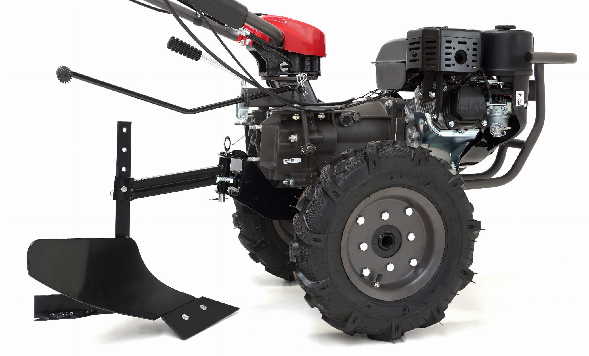 Do pracy z pługiem, przy użyciu glebogryzarki konieczna jest zainstalowana konsola (zaczep) oraz koła.