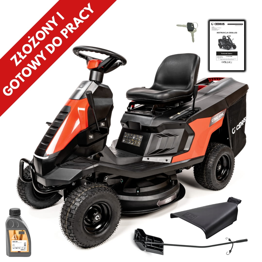 Każdy traktorek do koszenia w tym również Cedrus C-TRAC-65MC, kupiony zarówno w naszym sklepie internetowym i stacjonarnym zostaje złożony przez naszych mechaników i przechodzi przegląd zerowy, podczas którego sprawdzamy poprawność działania układów kosiarki samojezdnej, następnie wystawiamy kartę gwarancyjną. Dostawę traktorów ogrodowych realizujemy sami, żeby zapewnić naszym Klientom dostawę sprawnej i gotowej do pracy maszyny. Nasz kierowca dostarcza traktor w ustalone z Klientem miejsce i przeprowadza instruktaż z jego obsługi oraz przekazuje dokumenty i kluczyki. Chętnie odpowiada również na pytania dotyczące obsługi i konserwacji traktorka.