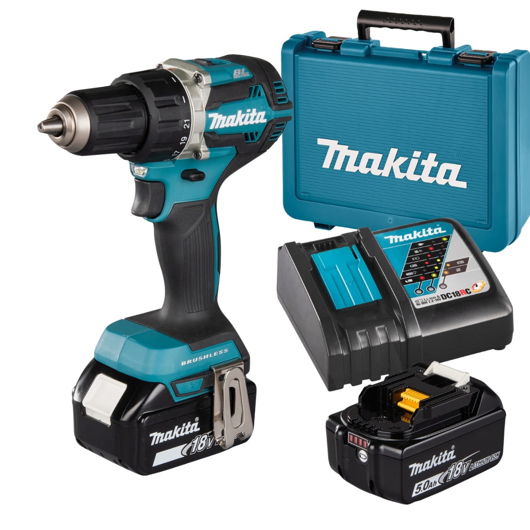 Wersja DDF484RTE w zestawie z 2 akumulatorami BL1850B (18V / 5,0 Ah) i ładowarką do akumulatorów DC18RC. Akumulatory są wyposażone w obwody ochronne, chroniące przed przeciążeniami i nadmiernym przegrzewaniem.